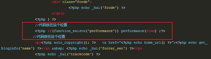 DUX 主题的位置放在主题目录下的 footer.php 中, 本站经测试放在了下面的红色框这个位置,在下面这行代码的上面 ,可以查找 php auto_copyright,其他主题请自行测试。