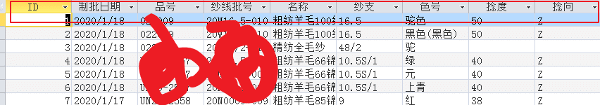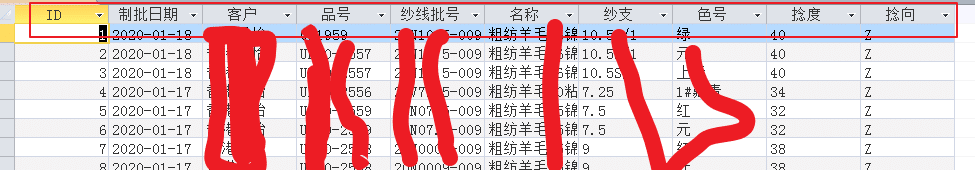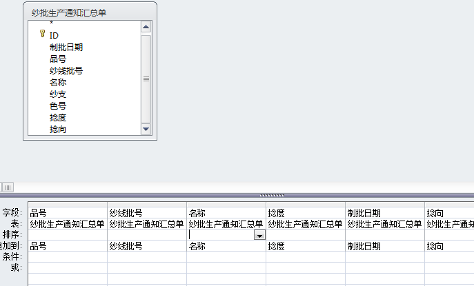 采用“not in”运算符来删除想要不重复字段的数据。例如在“纱线批号”字段的条件位置添加 SQL 查询语句“Not In (select 纱线批号 from [ 产品纱批表])”,其意思就是把表 2 中的“纱线批号”字段在表 1 中与表 1“纱线批号”字段不重复的数据添加到表 1 中。