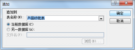点击创建查询设计→关闭显示表→点击菜单的追加→选择需要追加到数据的表(表 1)→选择表 2 并添加表 2 中将要追加的目标字段。 表 1 和表的字段最好修改成相同,这样不容易出错。