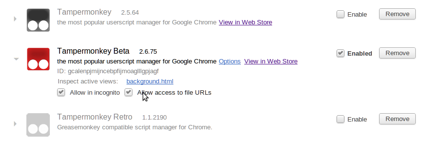如果您对 Tampermonkey 不满意 (这不大可能发生, 但是谁知道呢;), 您可以在 Chrome 浏览器的插件页面移除它。