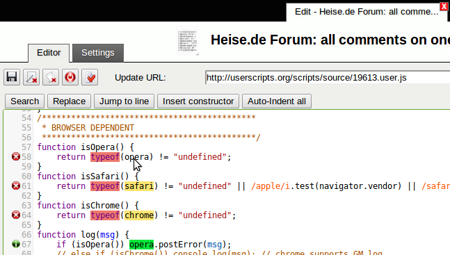 您的脚本无法运行?Tampermonkey 的语法检查或许可以帮您找到问题 …:)