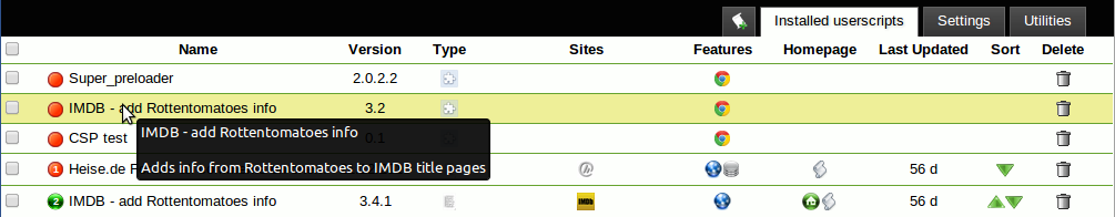 Tampermonkey 概览清晰地显示所有安装的脚本。您可以看到它们最后的更新时间, 如果它们有自己的主页, 您还可以对它们进行分类和其他更多的功能 … (视频教程)